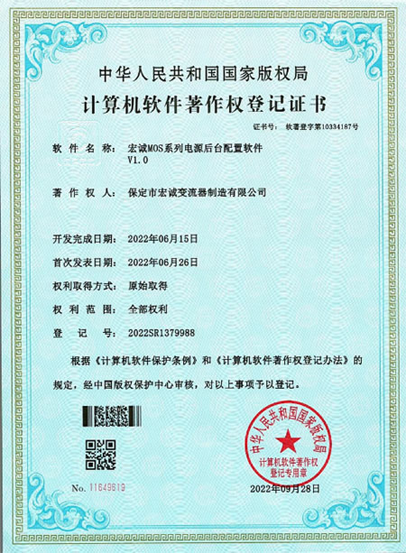 計(jì)算機(jī)軟件注冊(cè)權(quán)登記證書——整流電源開放式測(cè)試平臺(tái)V1.0